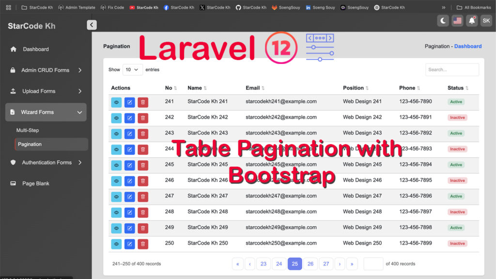 Pagination Feature You’ve implemented a fully dynamic table with pagination, sorting, searching, and adjustable entries per page using: Include CSS in Blade […]